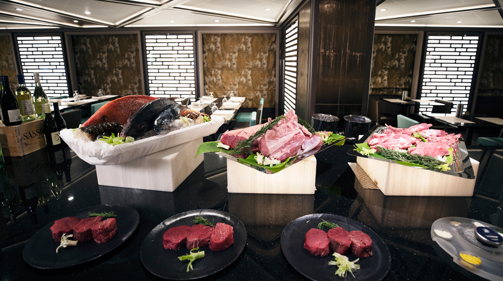 Across Silversea’s fleet, around 2,400kg of caviar are consumed each year, a 340% increase from the previous year. Additionally, there’s approximately 180,000 bottles of champagne consumed yearly, 66,100kg of lobster, 66,100kg of tenderloin steak, 33,100kg of striploin steak, and 58,000kg of fresh berries (including strawberries, blueberries and raspberries). Guests also have access to a remarkable variety of meats on board: from the ‘Italian Piemontese’ served in the Italian La Terrazza restaurant, the ‘French Limousine’ in the French La Dame restaurant and the ‘American Angus’ served in Atlantide.