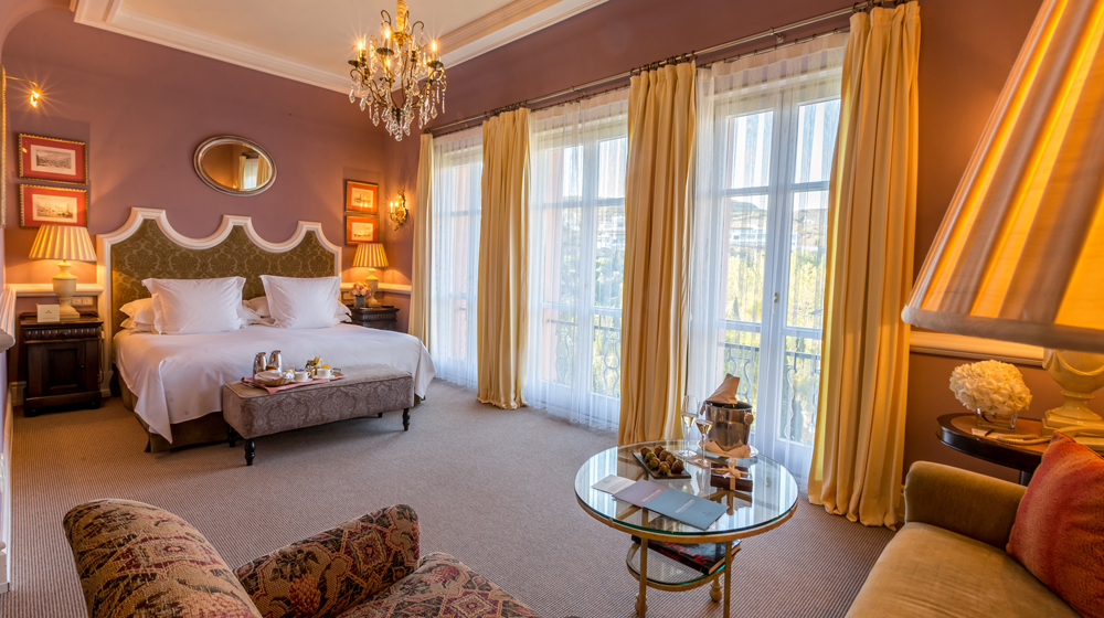Guests can enjoy a range of luxurious accommodation options across the resort’s 130 guest rooms, suites and villas. Deluxe Rooms are decorated in neutral tones, including details in travertine marble and views over the golf course, gardens and swimming pools. Suites offer spacious surroundings and balconies as well as a selection of some of the most valuable works of art.