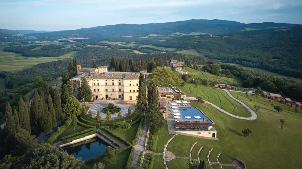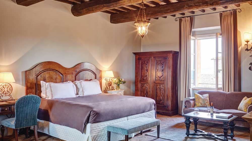 Once you’ve recovered from the flight, and shopped to retail saturation, you might want to head to Italy. Belmond already has its Caruso, Cipriani, Splendido, Splendido Mare and Villa San Michele beauties. But at the end of March it extended to Tuscany. Think 4,200 acres of rolling hills and woodland, hazy vistas that are an hour south of Florence, and you have the setting for Belmond Castello di Casole. Judging by artefacts found during recent construction – the same priceless bits of pot now displayed throughout the 39 rooms of the hilltop hotel – there have been people living on this site for millennia. Belmond bought the estate in 2018 and, with the help of designer J Banks and onsite Manager, Roberto Protezione, spent months bringing it up to scratch. This renovation involved immaculate manicuring of the immediate gardens and the addition of significant antiques like the chest shown here, which opens up as a closet.