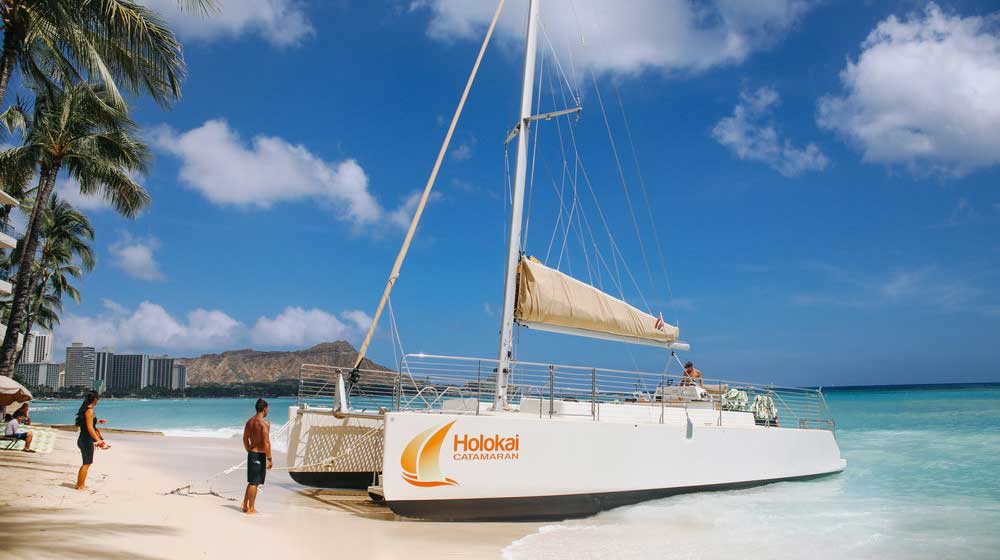 One example is the Holokai sail from Waikiki Beach. The Holokai is a custom-designed, handcrafted 49-passenger beach catamaran. Equipped with spacious seating, netted splash area and Bluetooth sound system, DISCOVERY members can cruise the calm waters of Waikiki for a memorable hour. (Platinum level DISCOVERY members also have access to an ‘open bar’ while cruising).