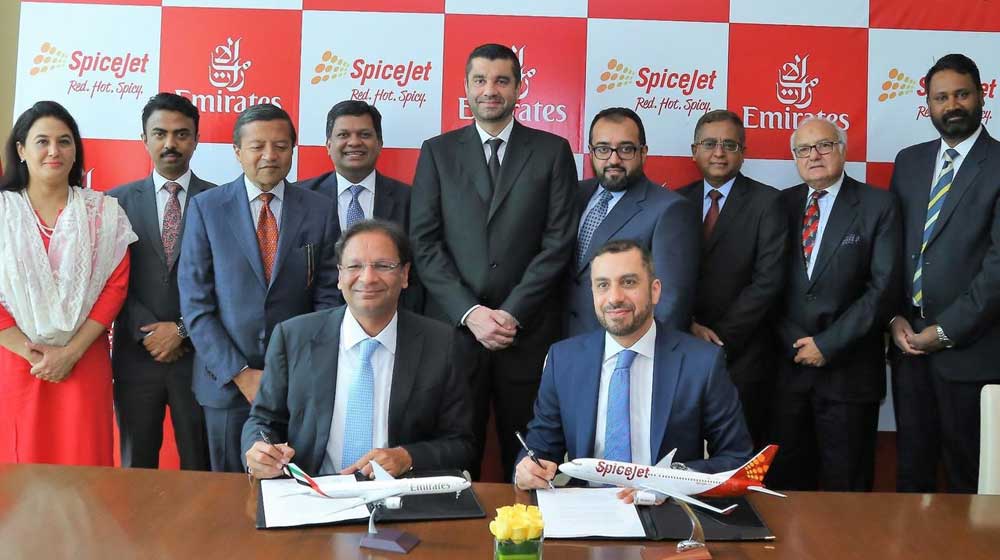 Emirates and SpiceJet have signed a Memorandum of Understanding (MoU) to enter into a reciprocal codeshare agreement, which is set to open new routes and destinations for passengers travelling between India and popular destinations across Africa, America, Europe and the Middle East.