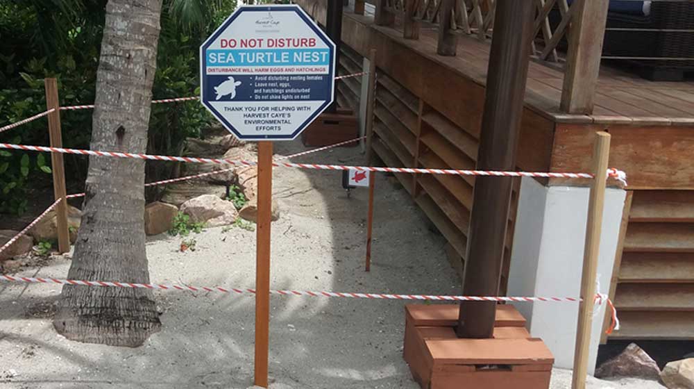 Conservation focus: At Harvest Caye, Belize, staff patrolled the beach each morning from June through October to check for any evidence of turtle nesting.