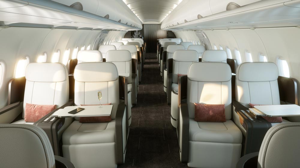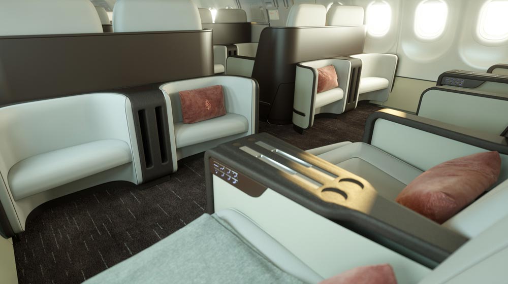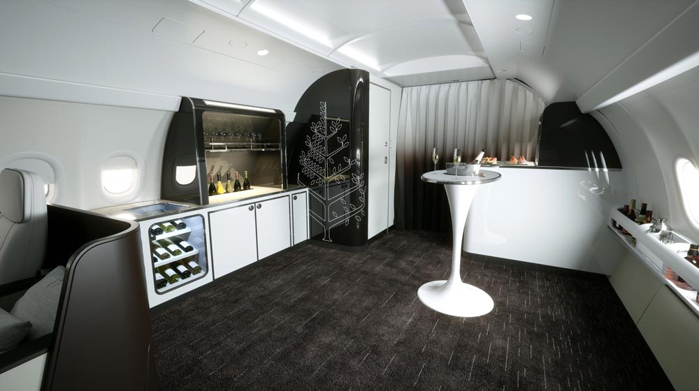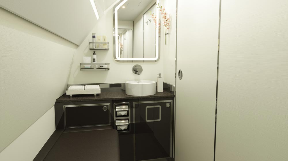 With only 48 custom handcrafted seats designed by Optimares, with leather from Italian producer Poltrona Frau, the spacious interior will also allow guests to socialise more easily while seated. New purpose-built personal ottomans at each seat will encourage interaction and comfortable face-to-face connections. With every detail under consideration, lavatories are also being expanded for added comfort and flexibility, reflecting a more residential style.