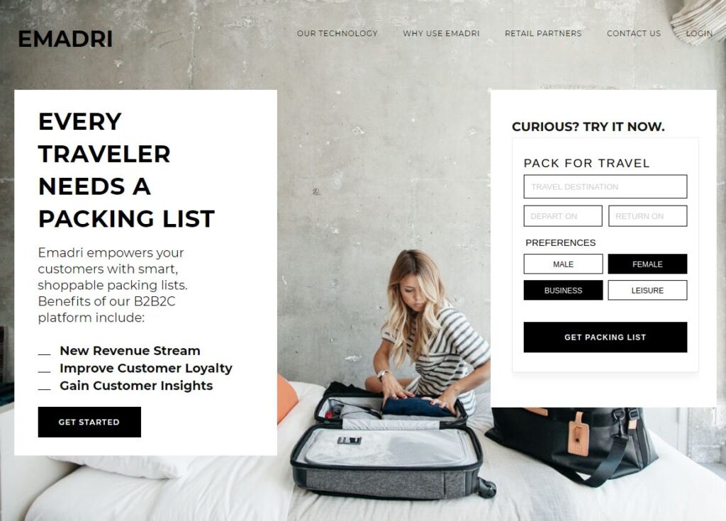 Emadri: A tool that generates relevant, shoppable packing and experience recommendations for travellers through technology that companies can plug into, automatically serving clients with personalised suggestions to improve their travel experience.