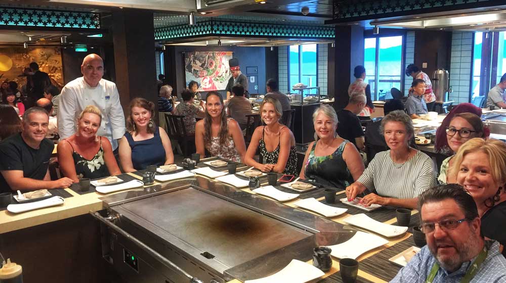 Lead image: Umi Uma Teppanyaki: Clockwise from left – Michael Ferrante (WA News); Brigita Devries (Dream Cruises); Chef Mark Best; Amelia Hungerford (Signature Luxury Travel & Style); Alana Russell (7travel); Harriet Morris (Travel Weekly); Kerry Heaney (Escape; Eat, Drink & Be Kerry); Pamela Wright (Vacations & Travel Magazine); Honida Beram (Cruising with Honey); Megan Singleton (Blogger at Large); Rod Eime (Travel Writer).