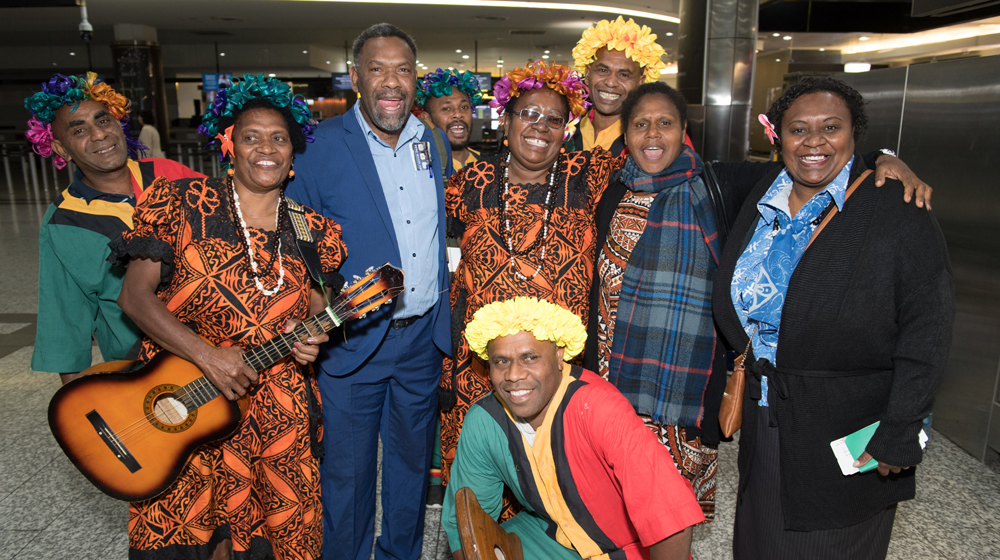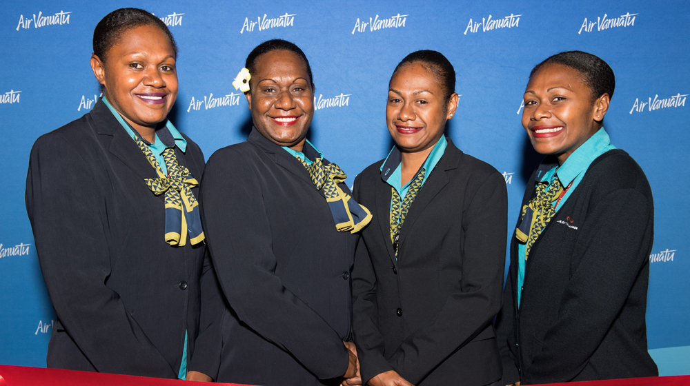 Air Vanuatu Cabin Crew with Paul Forbes, Air Vanuatu Commercial Manager, Australia
