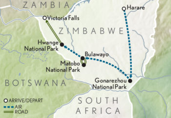 Raw and untamed, Zimbabwe’s vast tracts of wilderness shelter an endless array of the continent’s extraordinary wildlife, including healthy populations of rhino and elephant. On this two-week safari, guests delve into some of the country’s least-visited areas, including Gonarezhou National Park and UNESCO World Heritage-listed Matobo Hills where Cecil Rhodes’ grave is located. Intimate safari camps and lodges carefully positioned amid unspoilt landscapes provide a welcome nightly refuge with plenty of time in each camp for guests to contemplate nature and bask in Africa’s incomparable sunsets.