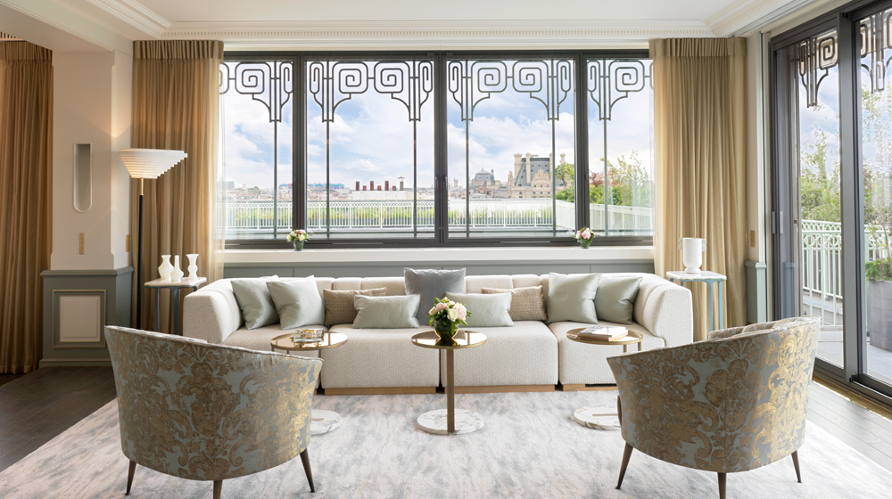 The designers found inspiration by considering what a modern-day Versailles would look like. Bringing with them a certain je ne sais quoi that is both elegant and audacious, the designers have created a series of lighter and brighter spaces decorated with an array of the finest French fabrics, including silk, damask and velvet, alongside signature furniture pieces and well-thought-out artworks that recall the history of Paris and Le Meurice.