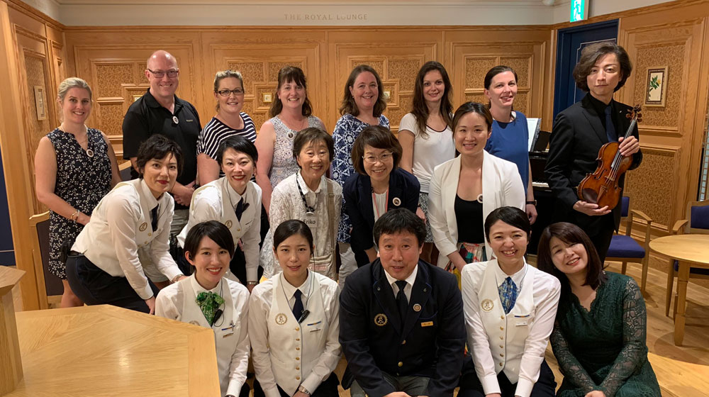 Participants were taken on the Royal Express, a luxury train from Yokohama to Shimoda and Shimoda to Izu Kogen, chartered for this famil, where they were treated to French cuisine, an on board violinist and pianist, and handcrafted sushi.