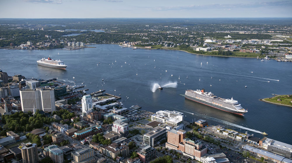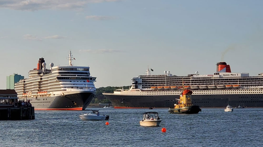 Luxury cruise line Cunard‘s flagship liner Queen Mary 2 had a rare meeting with sister ship Queen Elizabeth on 26 July 2019 in Halifax, Canada – the birthplace of the company’s founder Sir Samuel Cunard.