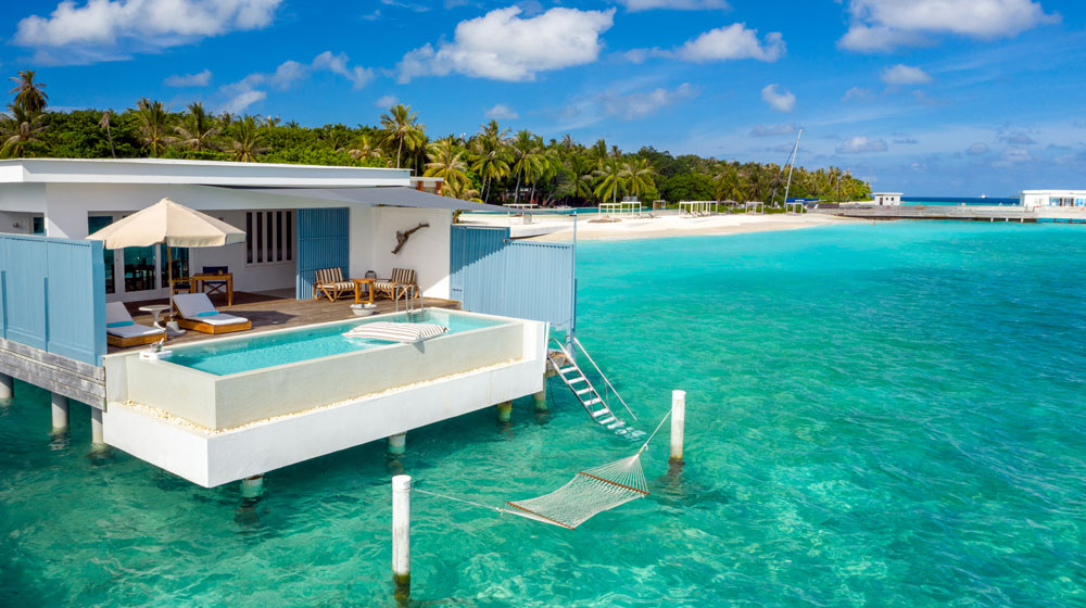 Amilla Fushi in the Maldives has completed a chic contemporary upgrade of its Lagoon Houses. Enhancements include a private hammock suspended over the lagoon, outdoor shower, poolside wine chillers and new contemporary artwork. Elegantly elevated and enveloped by a peaceful blue lagoon and sunset views, the whitewashed overwater bungalows offer uncompromised seclusion and a sanctuary of pure contentment relished from the splendid comfort of private decks.The Lagoon Houses – featuring spacious decks equipped with plush outdoor daybeds – invite poolside lounging with a chilled glass of pre-siesta champagne, while large freshwater infinity pools – newly augmented with floating bean bags – encourage all-day dipping and dozing. Steps that descend into the warm lagoon waters promise exploration and adventure, while above the surface endless breezy moments of relaxation can be enjoyed in uber-comfy hammocks suspended over the crystalline waters.