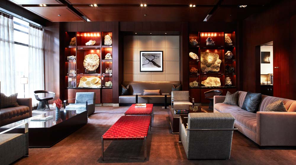 This particular Park Hyatt has many other stand-out points. Its lobby is like a club room, with morning-long coffee and 24/7 cold drinks, and books and more books. There is a 2016 Nancie King Mertz pastel likeness of the hotel’s pug, Parker, with former GM Walter Brindell, who adopted the dog from a rescue centre (a similar good deed has resulted in Mr Walker, a golden lab who is hotel ambassador for Park Hyatt Melbourne). The lobby also leads directly into an enticing Canada Goose store, whose windows are currently decorated by whimsical Roman street artist Alice Pasquini. Head across Chicago Avenue and you are in Ralph Lauren, do a U-turn and you are in Uniqlo.