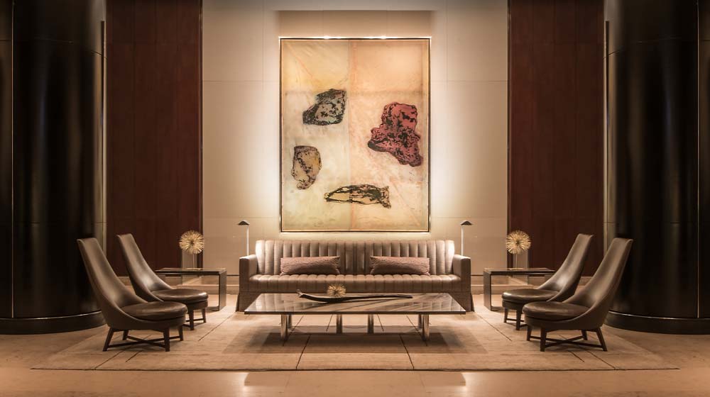 Park Hyatt Chicago is the city’s luxury hotel for art river-lovers, and the gal is always so happy to see the Mieko Yukib head in the ground floor lobby (Ms Yukib also did the whimsical animal gargoyles in elevators in Park Hyatt Tokyo). The 198-room Park Hyatt Chicago occupies up to the 19th floor of a 67-floor structure. Gorgeous bedrooms with have lots of art, and books, and memorable views of the city around: try to face east, over the Water Tower to Lake Michigan.