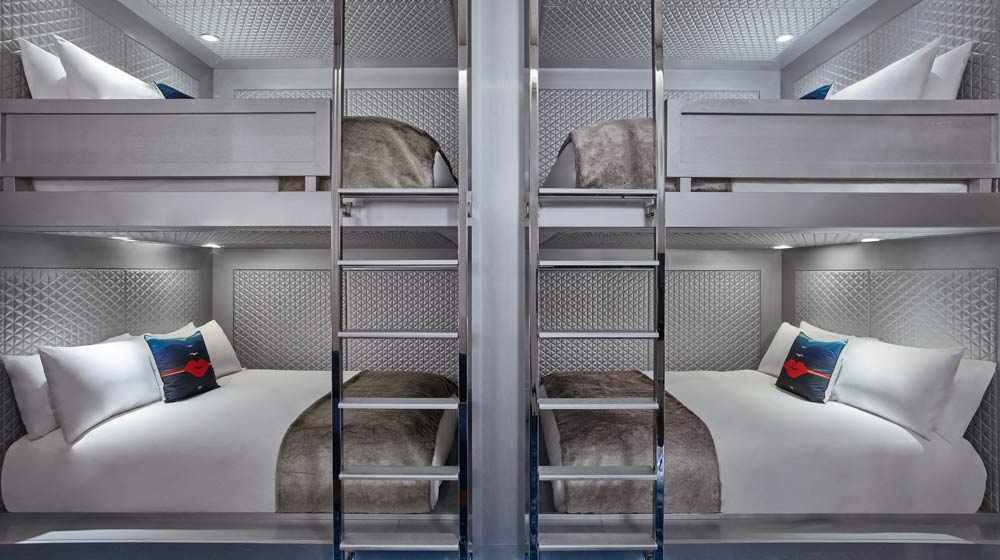 W Aspen features 88 guestrooms and 11 W-branded residences, along with four WOW suites and one Extreme WOW suite that can be a one, two or three bedroom, all of which offer modern takes on Ute patterns and furniture inspired by the decadence of ‘70s Aspen “pleasure palaces.”The interiors of all guestrooms and suites reference the cozy warmth of Swiss chalet architecture through the use of rustic wood finishes, sloped rooflines and a fireplace-inspired W MixBar. Each guestroom features pit and platform lounge seating. Selected rooms feature a W design first, quad-queen bunk beds, which can sleep up to eight to cater to a younger adult clientele.