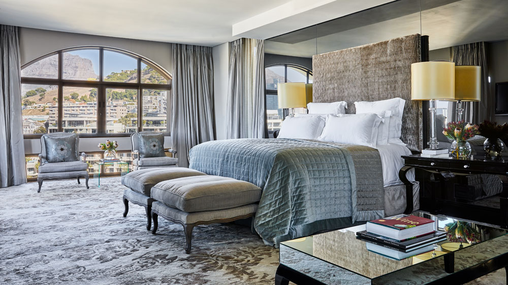 The One Above is thoughtfully decorated with small details and touches, allowing guests to enjoy moment after moment of discovery and providing a residential, luxury ambiance. Features include a black grand piano to entertain or be entertained, state-of-the-art appliances including a professional coffee machine and temperature-controlled glass wine cellar which can house over 280 bottles, hand-selected for guests by one of the resort’s expert sommeliers.The One Above can sleep up to eight adults; each of the four luxuriously appointed bedrooms feature ensuite bathrooms and unobstructed views of Table Mountain and the waterways below. The Master Bedroom has its own private terrace, comfortable seating areas, walk-in wardrobe, ample and considered storage space, large bed and a lavish marble his-and-hers ensuite bathroom complete with dual vanity, separate showers, and a Jacuzzi tub with mountain views. This glamorous space is completed with a fireplace, mirrors and opulent fabrics and finishes to make for the ultimate private retreat.