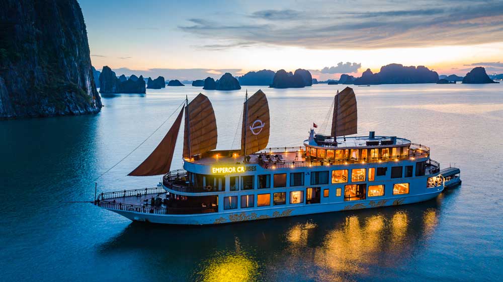 Emperor Cruises operates a range of overnight sailing experiences in Bai Tu Long Bay on board its small ship, aptly named Ha Long. Options include a two-day Emperor Experience, three-day Emperor Hideaway, as well as four- and five- day Experience Hanoi & Halong Bay cruises. The company also offers day cruises in Nha Trang Bay. It promotes itself as the first operator of ‘five-star experiential travel in Nha Trang Bay’.