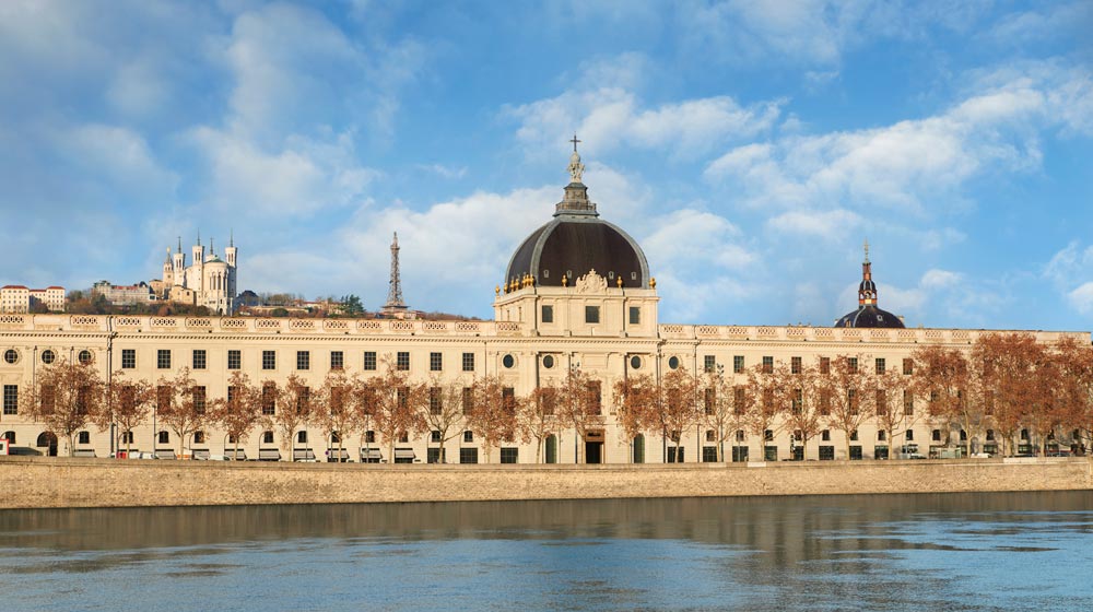 Since one third of all adult locals were born here during the building’s role as a maternity hospital, masses want to come and stay. Nuel has tastefully blended locale and style in the 142 bedrooms. Reach them via tall and narrow corridors, flanked by centuries-old stone pillars along one side, the Nuel carpeting, with dark mushroom and champagne burst, a reflection of mediaeval chiaroscuro. There are 28 duplex suites, with bedrooms upstairs, but I was really pleased to be in the single-floor, Rhône-facing 358. I especially liked Nuel’s soft-greys interior palette enlightened with bronze, and the fabrics and feel of the day cushions. I eschewed the hotel’s gym – too far away and too public – in favour of a dawn-breaking walk over Lyon’s famous Pont de la Guillotière – in medieval times the only Rhône bridge south of Paris. And then, after a splendid breakfast which showed French products at their best, I walked through the conciergerie and across the public walkway under the Dome to reception. Note, incidentally, that space’s end wall of real books, with bookshelves reaching right up to its centuries-old ceiling. Some walls are partly covered by freestanding silk screens – Lyon is still centre of silk. This entire hotel has so many stories waiting to be told, and shared.