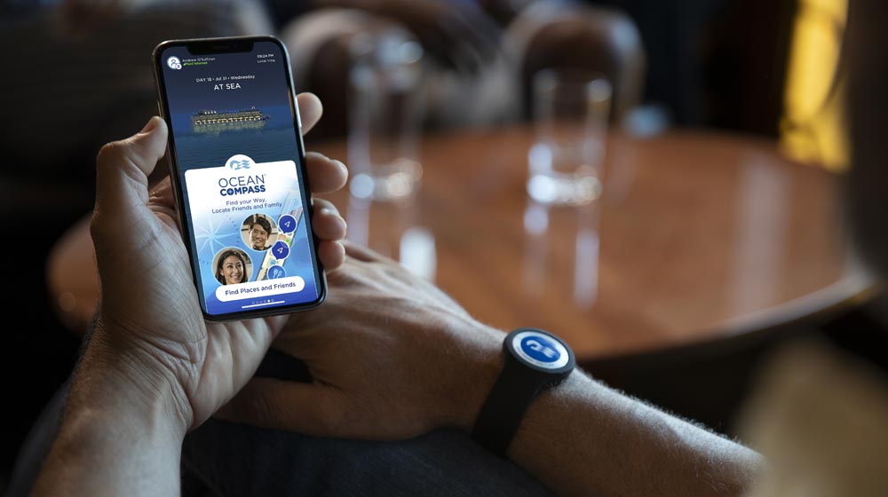 - Family and Friends Locator – Finding travel companions and directional ship information: Accessible on portals throughout the ships and via guests’ smart devices, OceanCompass leverages the OceanMedallion to easily locate and chat with friends and family on board, as well as enables point-to-point wayfinding throughout the ship. OceanCompass guides guests throughout their journey, providing directional information so they can seamlessly navigate to their next point of interest.