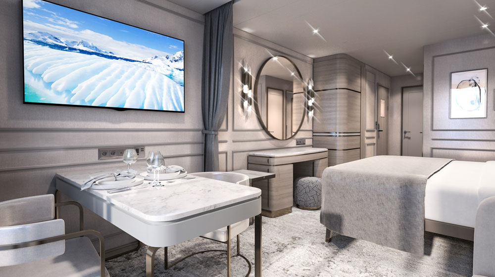 The 200-guest luxury vessel will offer 28 voyages of nine to 19 nights, with nearly two-thirds of these classified as ‘Remote Expedition’ sailings that will visit the High Arctic and Antarctica, Svalbard, Iceland, Greenland, the Falkland Islands, and Chilean fjords and glaciers. These designated voyages focus on the rugged and remote adventures of the destinations, with Zodiac landings, invigorating hikes, volcano explorations, wildlife observation and other bold pursuits.