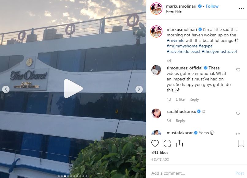 Molinari also shared a number of videos on board the ship, as well as a clip from the shoreline, identifying the ship as The Oberoi Zahra Luxury Nile Cruiser.
