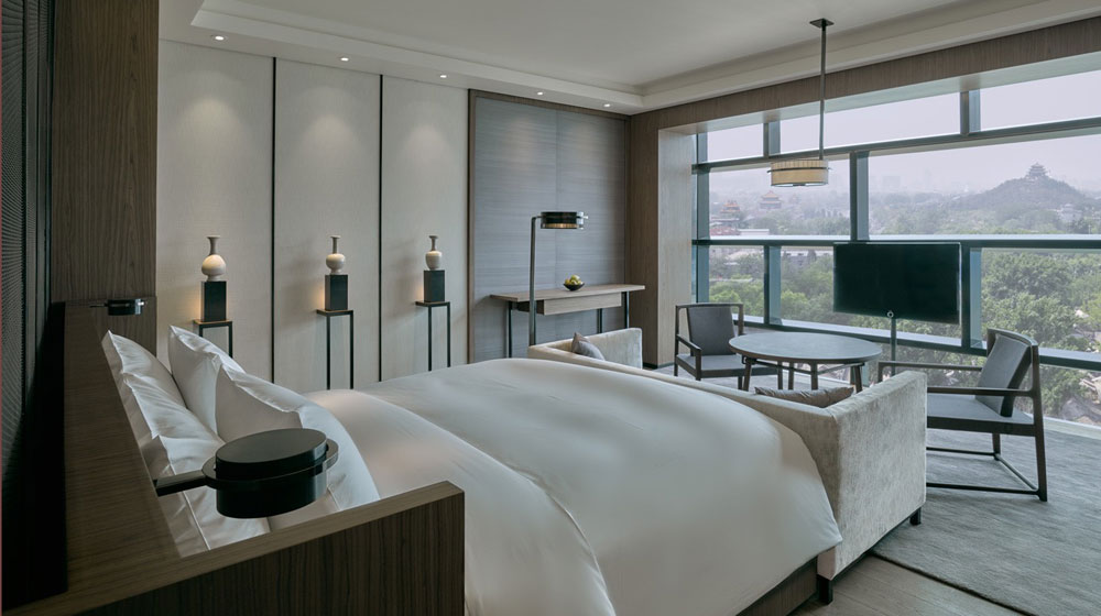 It is equally stunning inside. The URSPA by AW Lake uses Cha Ling products, by LVMH. Interior designer Andy Hall, from MQ Shanghai, and lighting specialist Flaming Beacon, out of Melbourne, have got the feng shui right, both in the main spa and above it in a private meditation room, and in the bedrooms. Room sizes start at 40 square metres and go up to the 220-square-metre two-room PuXuan Suite. The sensible, regardless of room type, pay extra for access to the eighth-floor Club, which offers indoor-outdoor space and a 24/7 kitchen and bar where, if you like, you can fix your own cocktail and snacks.