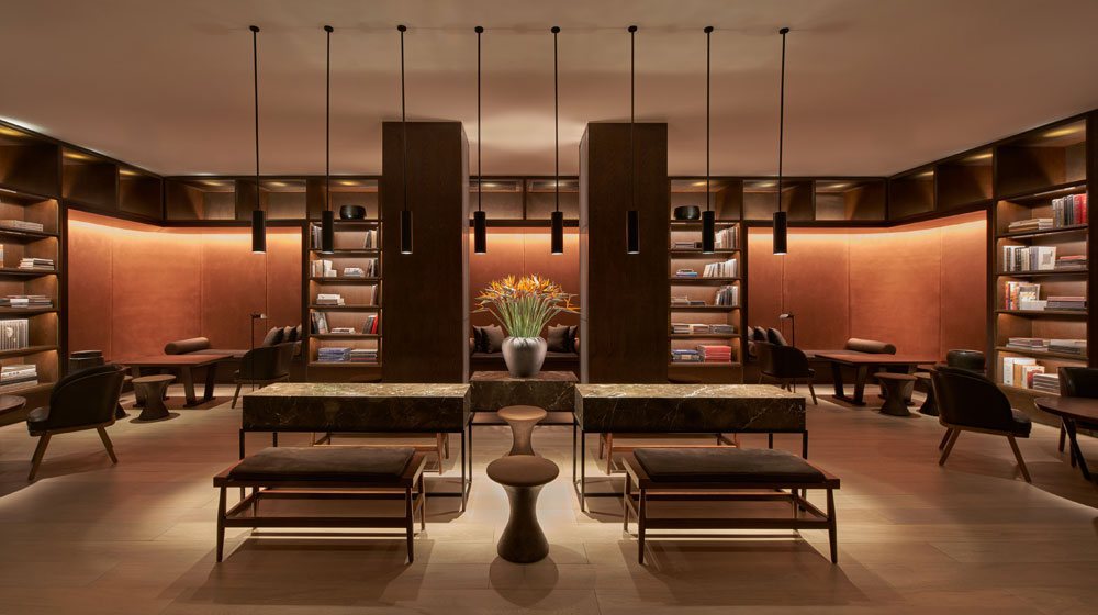 Eating, drinking and networking is all on the fifth floor, which extends to mammoth outdoor terraces fully used all summer long. With the GM, Mark Bradford – yes, another Mark! – I had a memorable dinner in the Mandarin Grill, an Adam Tihany space with shiny wood floors and furnishings and crisp white linens. A favourite starter is home-cured Norwegian gravadlax, carved tableside (have egg white as a condiment, I was urged, to bring out the subtle flavour). Like many, I went on to Wagyu M4-5 Stockyard 300g ribeye which went superbly with the hotel’s specially-labelled 2015 Bordeaux Ch Confidence de Margaux. The easy way to get ‘home’ afterwards was to take 30 marbled steps from the fifth floor up to the sixth floor, then walking, via an airbridge, across the top of the library to reach the main rooms corridor.