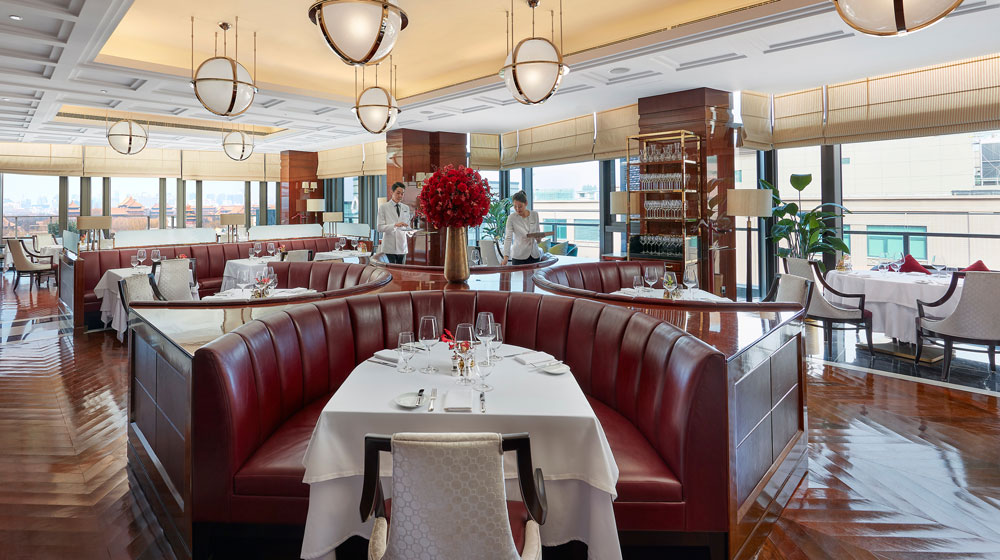 I found corner suite 601, looking west to the rooftops of the Forbidden City, really calming, and I would love to have spent more time there. But I had a busy program. The GM, Mark Wouters, showed me the Chinese restaurant where, imaginatively, tables are peripherally bordered through about 300 degrees by waist-high walls, to give everyone a sense of privacy while allowing guests and servers, all trained by theatrical directors, to get in and out – there is also, of course, one proper private dining room, essentially for Chen Dongsheng (currently number 61 on Forbes’ China Rich List), who seems to eat there nearly every day.