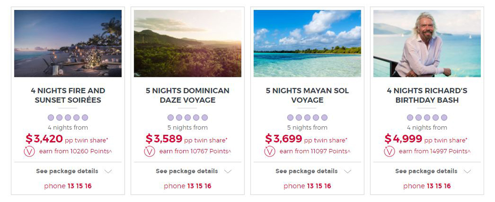The packages are available through Virgin Australia Holidays on Scarlet Lady voyages through the US, Mexico, Puerto Rico and Dominican Republic. The four-night Fire and Sunset Soirees cruise, including Virgin Australia airfares, starts from $3,420 per per twin share. Other voyage options include the five-night Dominican Daze Voyage and the four-night Richard’s Birthday Bash.