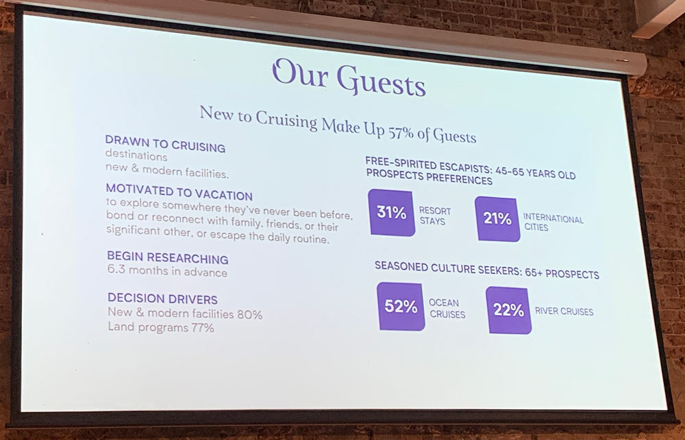 The other section of our guests were new to cruising. Not just new to Azamara or our family of brands, but had never cruised before they came on a Azamara cruise. At the moment across the three ships in 2018 that was 57% of our guests on board. We looked at guests that had already done resort stays, we looked at international cities and they were seasoned culture seekers,” she said.“Decision drivers for our guests were the facilities that they have a luxury stay, but for 77% of our new guests it was all about the land program, the shorex they could do, what they could experience.”