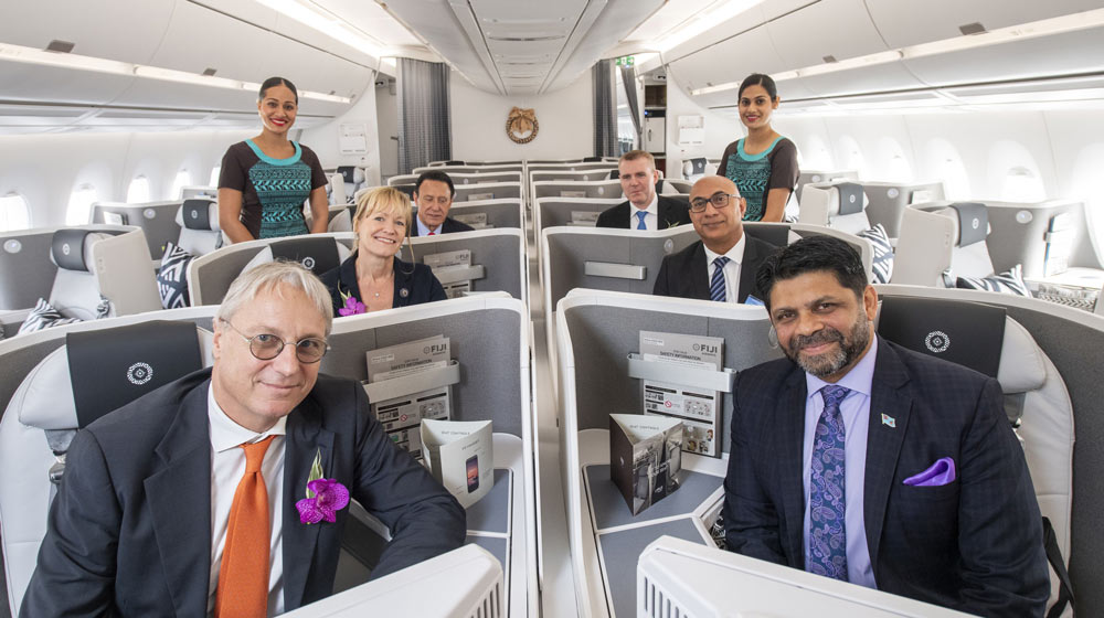 Fiji Airways has configured the carbon-fibre composite jets with a two-class configuration, featuring 334 seats including 33 lie-flat Business and 301 Economy class seats, 39 of which are designated as BULA SPACE seats with extra legroom. Seatbacks are set up with Thales in-flight high-definition entertainment systems.
