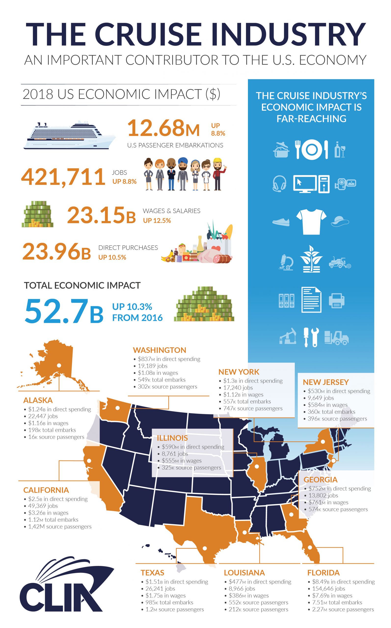 A new study from Cruise Lines International Association (CLIA) reveals that the cruise industry generated over US$52.7 billion to the US Economy last year, a 10% increase on two years ago.