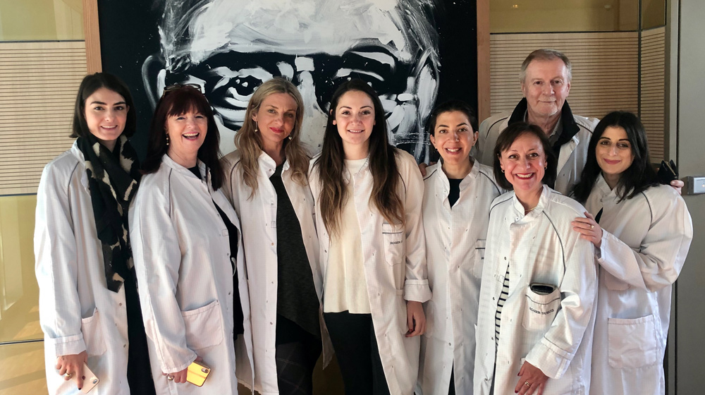 Lead image: In their coats during the full walkthrough of Richemont’s headquarters in Geneva, to see what goes on behind the scenes of Roger Dubuis collection of watches, courtesy of La Reserve Geneva.