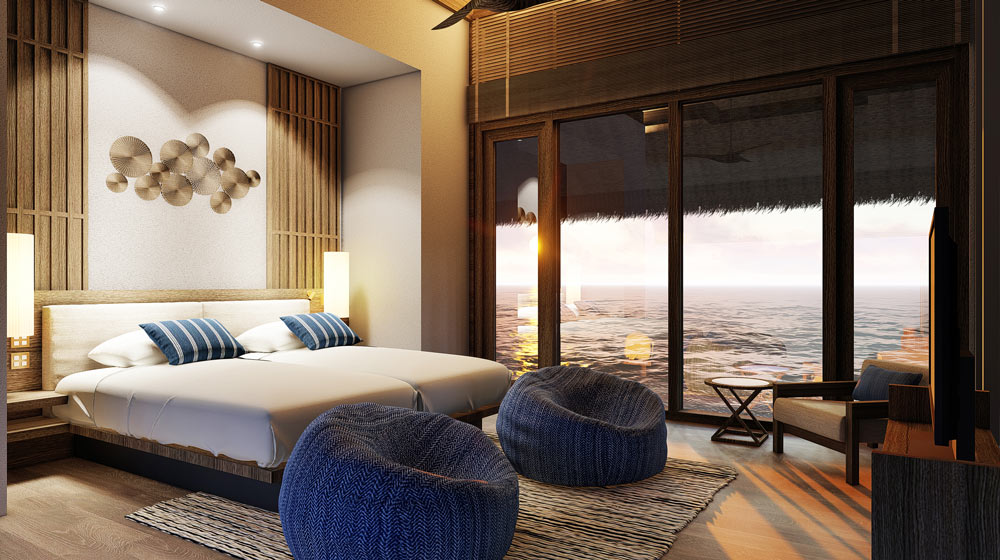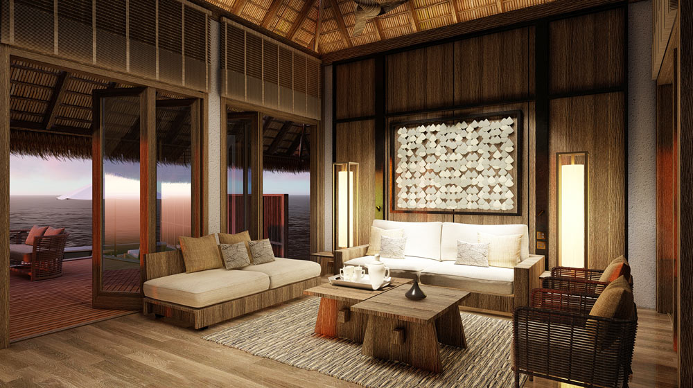 The in-demand Family Water Villa will also be transformed into two villa types and renamed Two-Bedroom Grand Water Villa and Two-Bedroom Grand Water Villa with Pool. The design of the Two-Bedroom accommodation will be similar to the Grand Water Villas, but it will offer two bedrooms instead of one and can host any group of guests. Set on stilts over the Indian Ocean, the villas offer views of either the lagoon or ocean and a sunset or sunrise view and can sleep a maximum of four persons — two adults and two children or four adults.