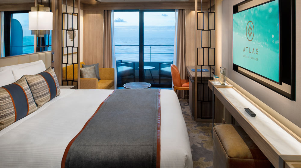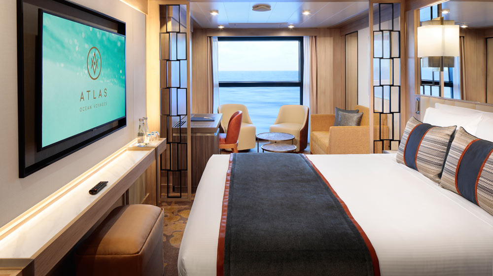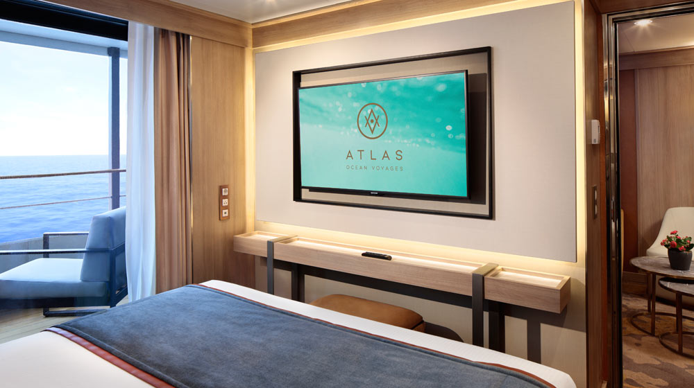 Atlas Ocean Voyages, up until recently branded Mystic Cruises USA, has offered a preview of the suites and staterooms that will be offered aboard World Navigator when she launches in 2021. The ship will comprise 98 deluxe suites and staterooms, all outward facing and most fitted with a private veranda.