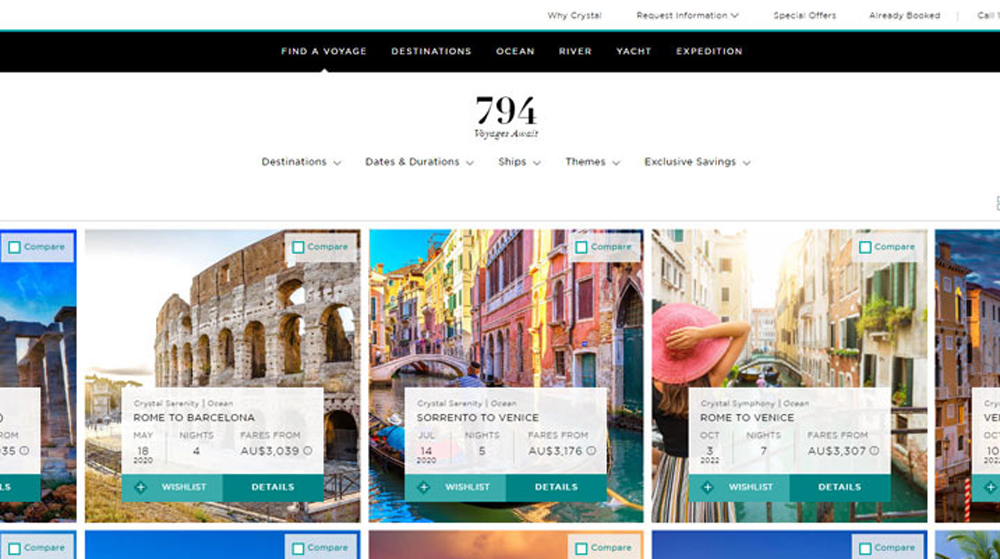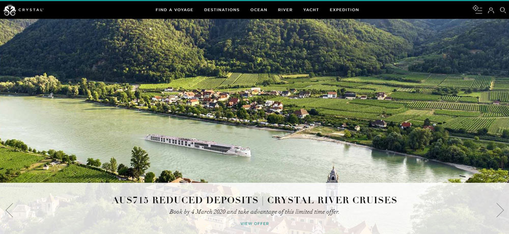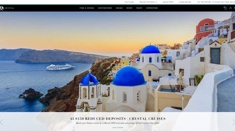 Crystal’s website now enables consumers to search for ocean, river, yacht and expedition – namely Crystal Endeavor – all on the one website and URL. Customers can also search for their nearest listed travel agency by postcode.