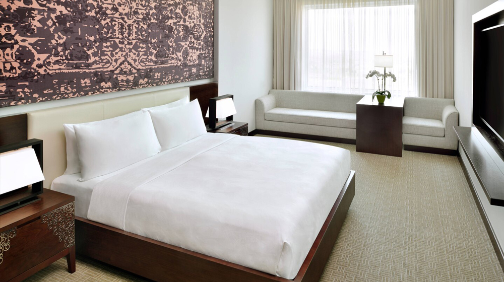 JW Marriott Muscat features 304 guest rooms and suites, many of them offering views of Oman’s wadis, spectacular natural valleys flowing with water.