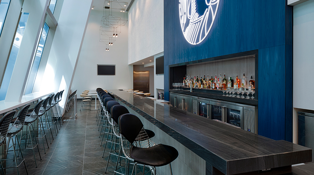 Where form meets function, the lounge also provides guests with private noise-buffering workspaces, a family friendly room, high-speed Wi-Fi, premium restrooms and showers, power outlets and American Express Member Services Professionals to assist with on-site card- and travel-related services.