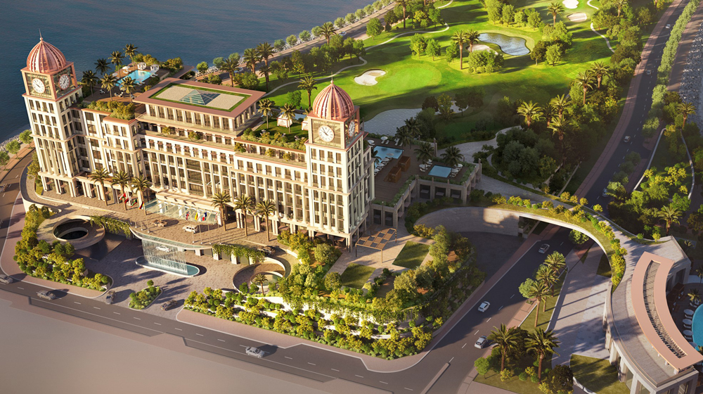 Corinthia Doha is poised to be a prominent structure in Gewan Island, overlooking the island’s planned golf course and beach club.
