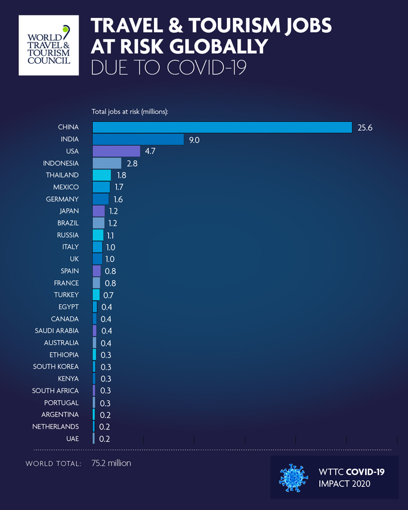 New research by the World Travel & Tourism Council suggests that up to 75 million jobs are at immediate risk in the travel and tourism sector due to the coronavirus pandemic.