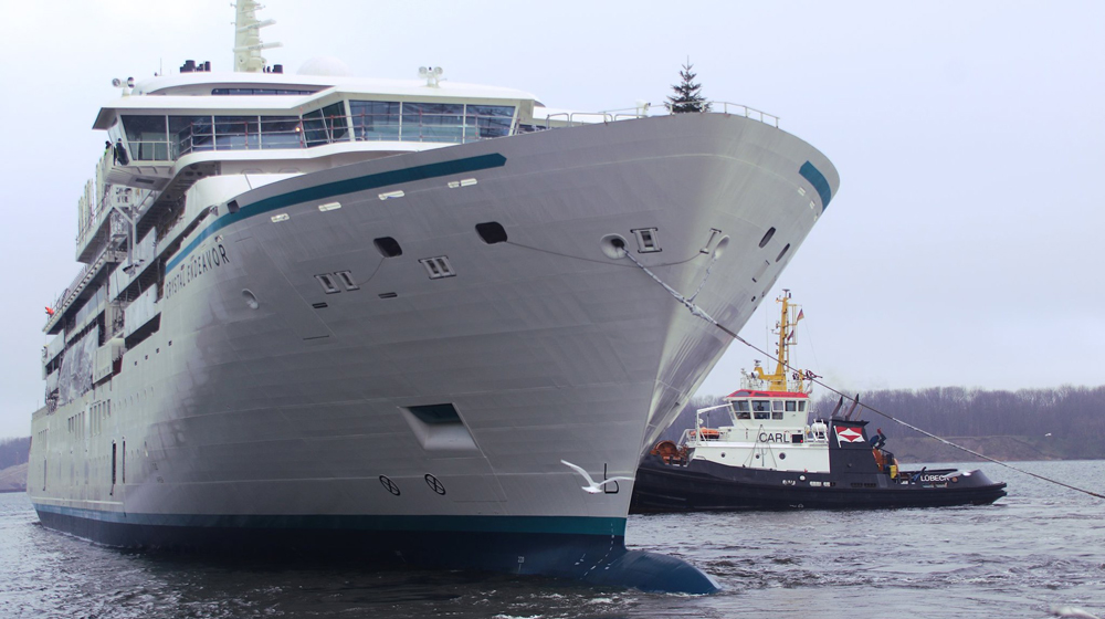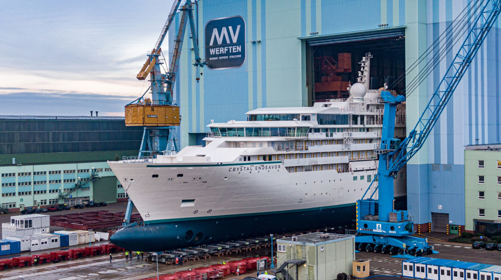 The ultra-luxury Crystal Endeavor expedition ship was floated out of the Stralsund shipyard in late December and was scheduled to enter service in August 2020.