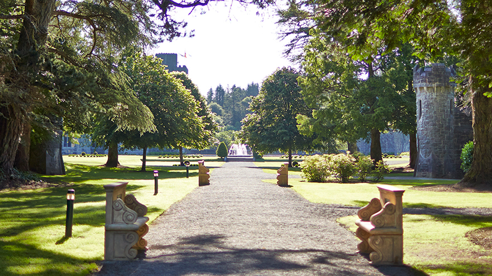 Time to explore. I started cycling some of the 141 hectares of wooded grounds – Ashford offers trips with former 2008 Olympian, David O’Loughlin. Paths, many tarmac, are thoughtfully well-maintained. At one point comes an enormous squawk in a tree high above – a falcon has landed. The falcon school is right nearby. I passed two brand-new tennis courts and a dog clean-up station (the hotel has a pair of gigantic Irish wolfhounds on daily call). I passed St Mary’s Church (the hotel restricts itself to two or three weddings a year).