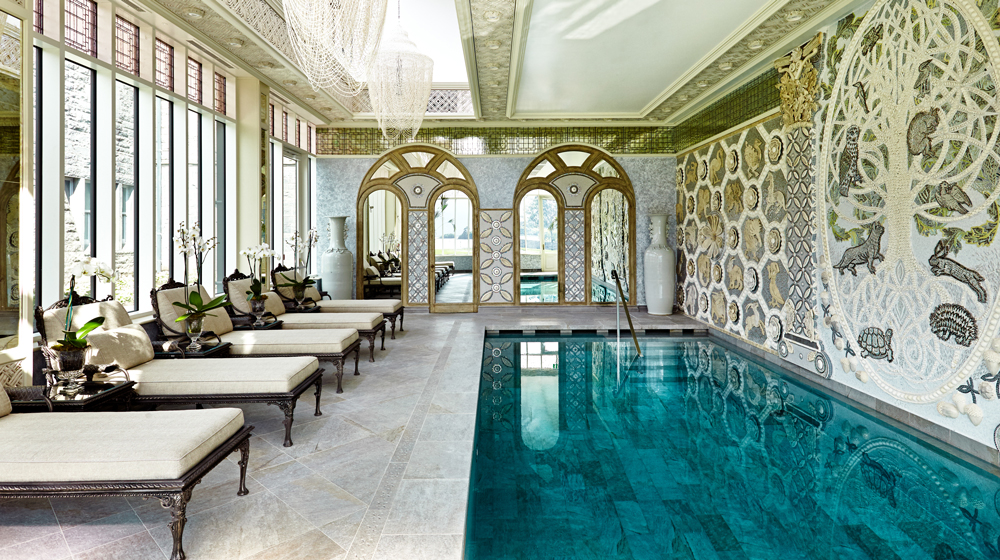 This is a place for destressing and privacy – recently, 10 adult Texan girlfriends flew in for four nights, without going off-campus. General activities include golf, falconry, archery, sheepdog working, clay pigeon shooting, small cruises, walking those wolfhounds, tree climbing, ziplining, history tours, riding, fishing, boating, cycling and kayaking, tennis, paddleboarding, off-road driving, biking and visiting resident artist Rick Lewis. And, as would be expected, there is a good gym (LifeFitness) and a superb spa, a haven of palest greys and big white orchids. Softest music and skilled techniques while away the hour-long facial (unusually, Laura carefully explains why, for my skin, she chose Elemis rather than Natura Bissé or Voya).