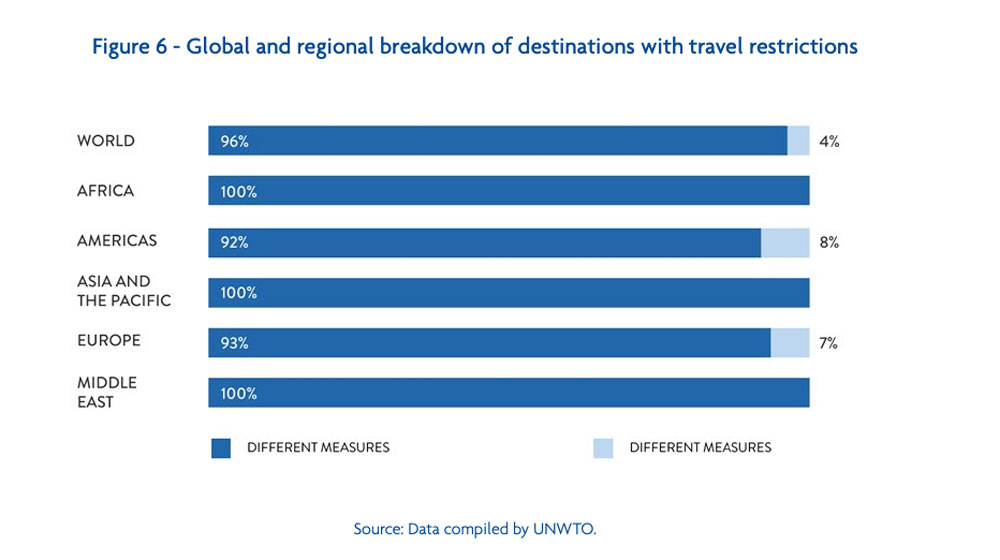A newly released report by the World Tourism Organization (UNWTO) have determined that only 4% of the world’s destinations had not imposed travel restrictions due to the coronavirus pandemic.