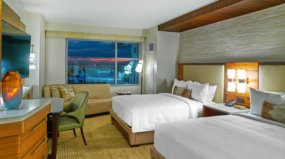 Infused with modern art and augmented reality technology, JW Marriott, Anaheim Resort features stunning architectural designs that bring an equestrian farming concept to life throughout. Guests will delight in eye-catching, modern décor featuring handpicked marble flooring, a glass-blown chandelier, and nature-inspired honeycomb concepts throughout, highlighting natural materials, rustic tones and a warm colour palette.