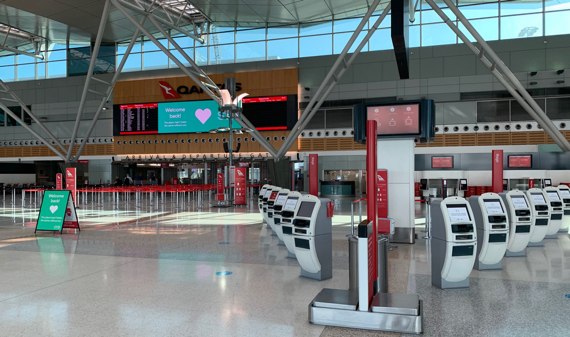Lead image: A near-empty Qantas Domestic Terminal at Sydney Airport on a Friday morning in July 2020 | credit: © Guy Dundas