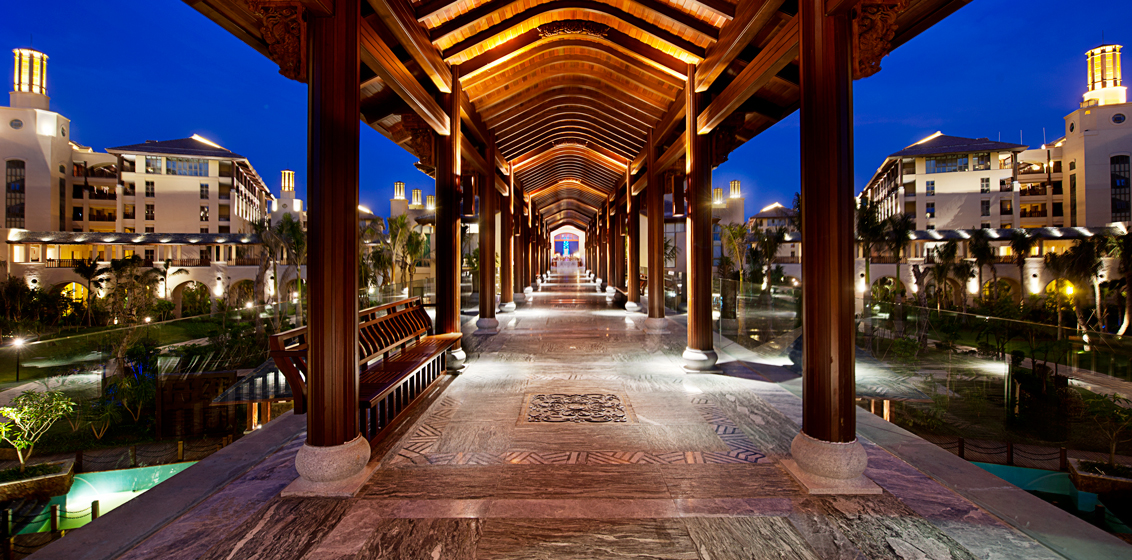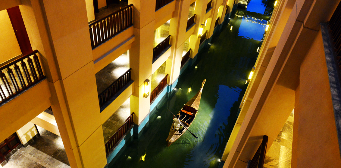 Within the lobby, precious detailed wood carvings on walls and ceiling friezes took more than two years to complete and demonstrate a sense of grandeur and profoundness. Its unique 1,200-metre-long river is the world’s first seawater canal running within a hotel. Guests can take a dragon boat ride to reach guestrooms and all other hotel facilities while enjoying the ever-changing scenery and amazing landscapes.
