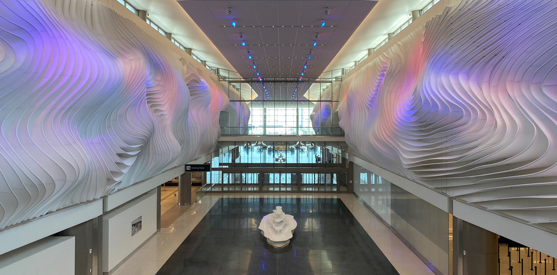 The 8,535-square-metre luxury lounge spotlights the area’s glorious mountainous landscape and offers guests a relaxing retreat during their travels.