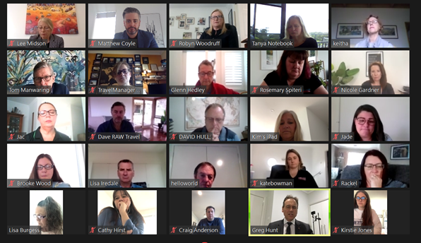 Thirty travel agencies ‘Zoomed’ with Federal Member for Flinders and Minister for Health, The Hon. Greg Hunt MP, last week to brief him on AFTA’s request for a $125 million tailored financial support package.