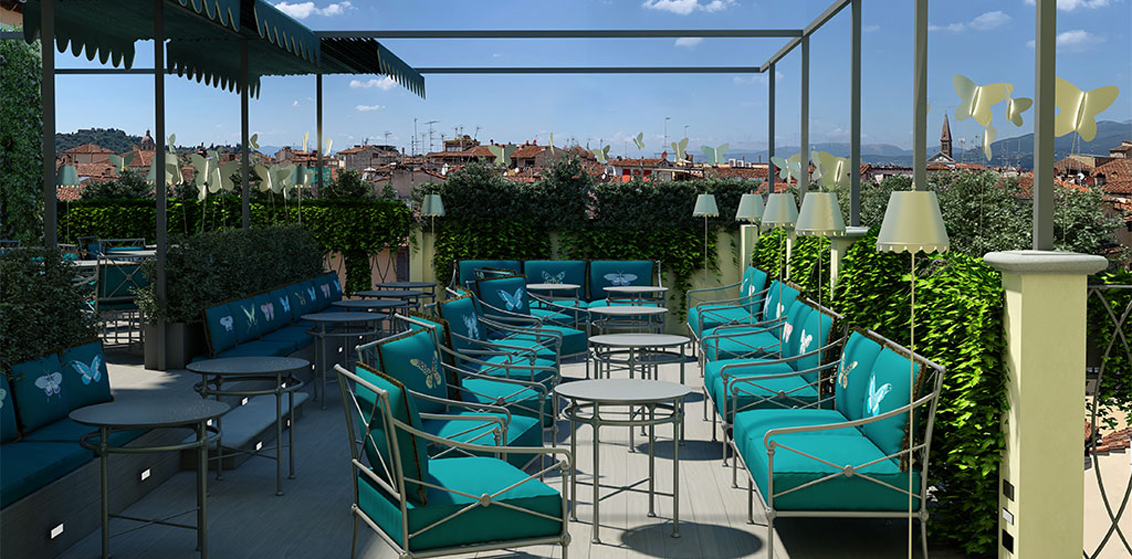 The new Florence hotel will feature a champagne bar, dubbed La Cave, offering a selection of Girolami’s hand-selected collection of bubbles from Italy and France. The primary restaurant will be IL Magnifico Bistro and Cafe on the ground floor and La Terrazza on the fourth floor, offering panoramic views of Santa Maria Novella, San Frediano and the Oignissanti Church. The hotel will also include an intimate gastronomic restaurant, Lucie and The Butterfly Terrace on the rooftop offering signature cocktails.