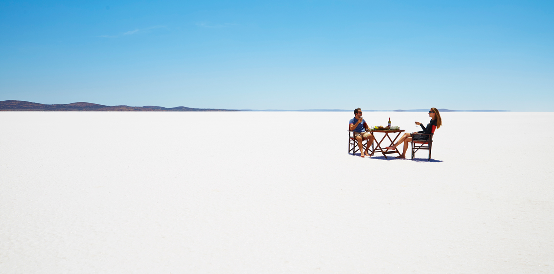 Soaring east to Anna Creek Station, the world’s largest pastoral holding, guests will be introduced to the locals who call this working cattle station home and tour the homestead.